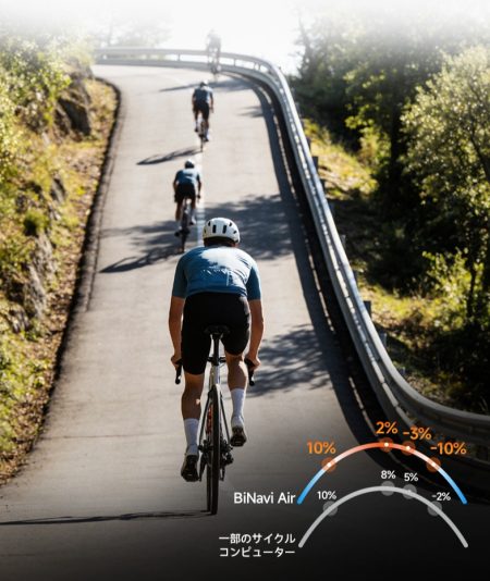 最適化されたサイズと軽量さ、エアロダイナミクス設計はあらゆるバイクにマッチし、BiNavi譲りの高機能は、サイクルコンピュータに求められる多様なニーズに応えます。