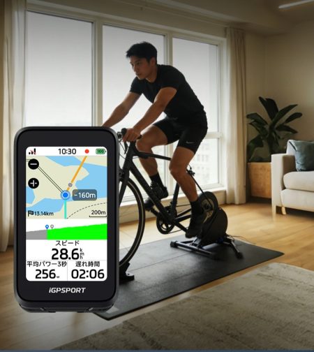 ルートシミュレーション機能により、実際の屋外ルートを再現。室内でも有名なヒルクライムや道路を走行可能です。