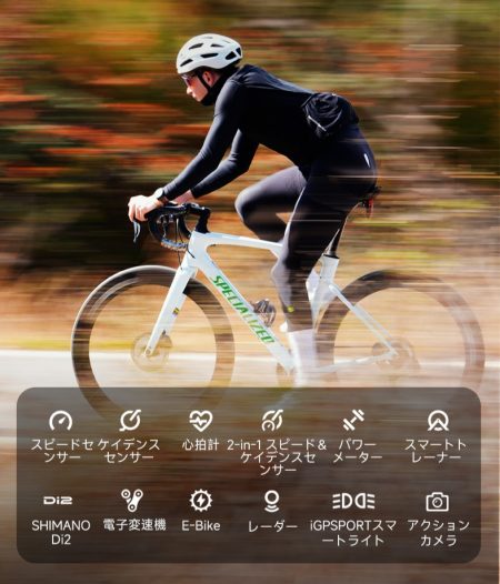 スピードセンサー、ケイデンスセンサー、心拍計、2-in-1 スピード&ケイデンスセンサー、パワーメーター、スマートトレーナー、SHIMANO Di2、電子変速機、E-Bike、レーダー、iGPSPORTスマートライト、アクションカメラ