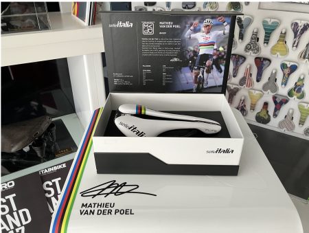 サドルメーカーで唯一、メイド・イン・イタリアを貫く selleITALIA。派手なグラフィックやデザインを身上としない、性能重視な実直なブランド。とはいえ色遣いやステッチのカラー、ワンポイントで入るカラーやデザインなどにイタリアの香りを強く感じます。プロ選手からの支持も高く、パンターニも selleITALIA を愛用していました。